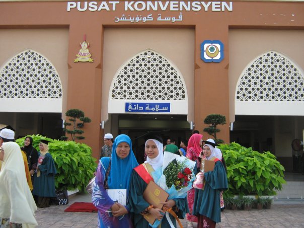 waktu konvo diploma. waktu ni sebelum emak operate. emak tak duduk dalam dewan pon tengok aku amek scroll. sebab emak tak boleh duduk lama2, sakit. jadi dia tunggu dekat masjid. takpe, janji emak datang :")